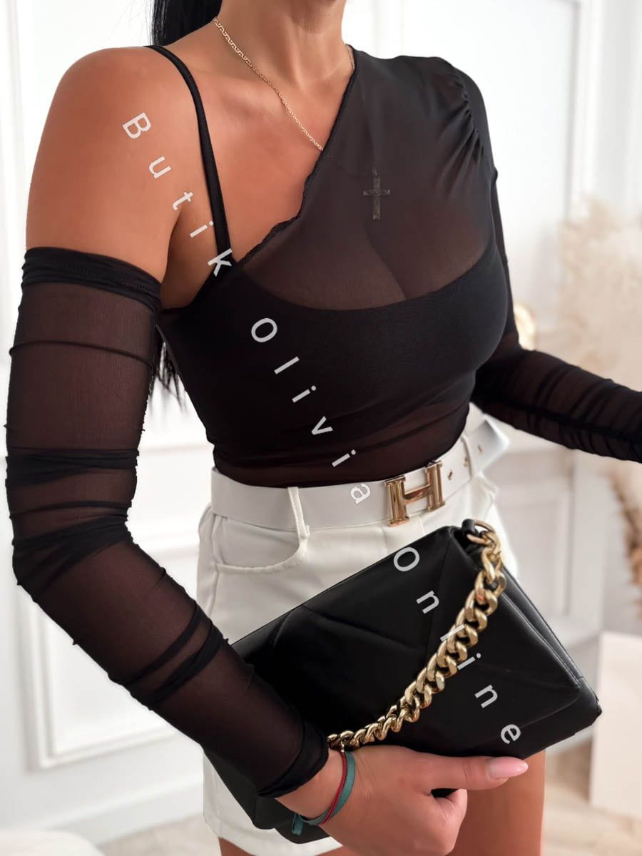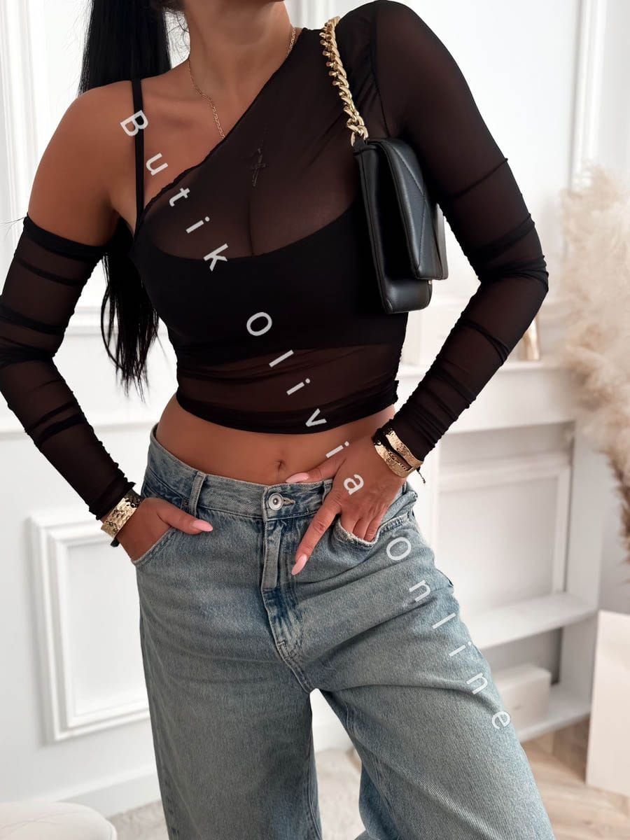 Bluzka asymetryczna siatka + top na cienkich ramiączkach AVE - czarny