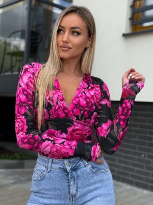 Bluzka z dekoltem FUSHIA FLOWER - fuksja