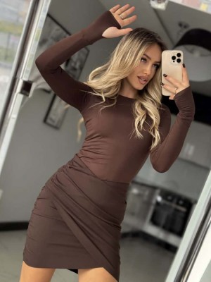 Bluzka z rozcięciem na kciuk BROWN ONLY - czekoladowa