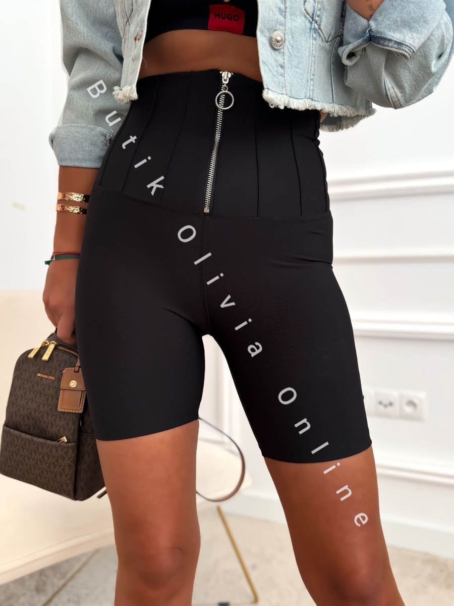 Czarne kolarki damskie z wysokim stanem to idealne połączenie modnego stylu i wygody na co dzień. Modelujący krój pięknie podkreśla sylwetkę, a wysoka talia optycznie wysmukla talię i brzuch. Zamek z przodu nadaje kolarkom nowoczesnego charakteru i sprawia, że świetnie wpisują się w aktualne trendy. Elastyczny materiał dopasowuje się do ciała, zapewniając komfort noszenia i swobodę ruchów przez cały dzień. Kolarki doskonale wyglądają w stylizacjach z krótką kurtką jeansową, oversize’ową koszulą lub sportowym topem.