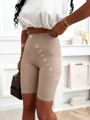 - Beżowe kolarki damskie prążkowane