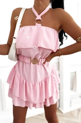 Kombinezon hiszpanka bez rękawów z paskiem MARE - jasny róż