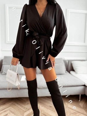 Kombinezon krótki z dekoltem LOVELY - czarny