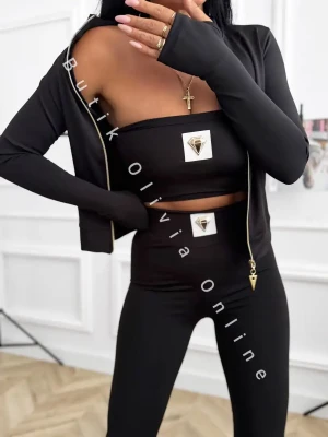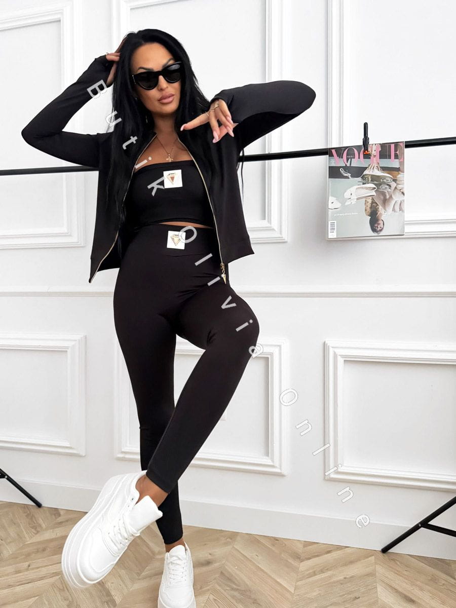 Komplet 3-częściowy bluza na zamek + top + legginsy SET - czarny