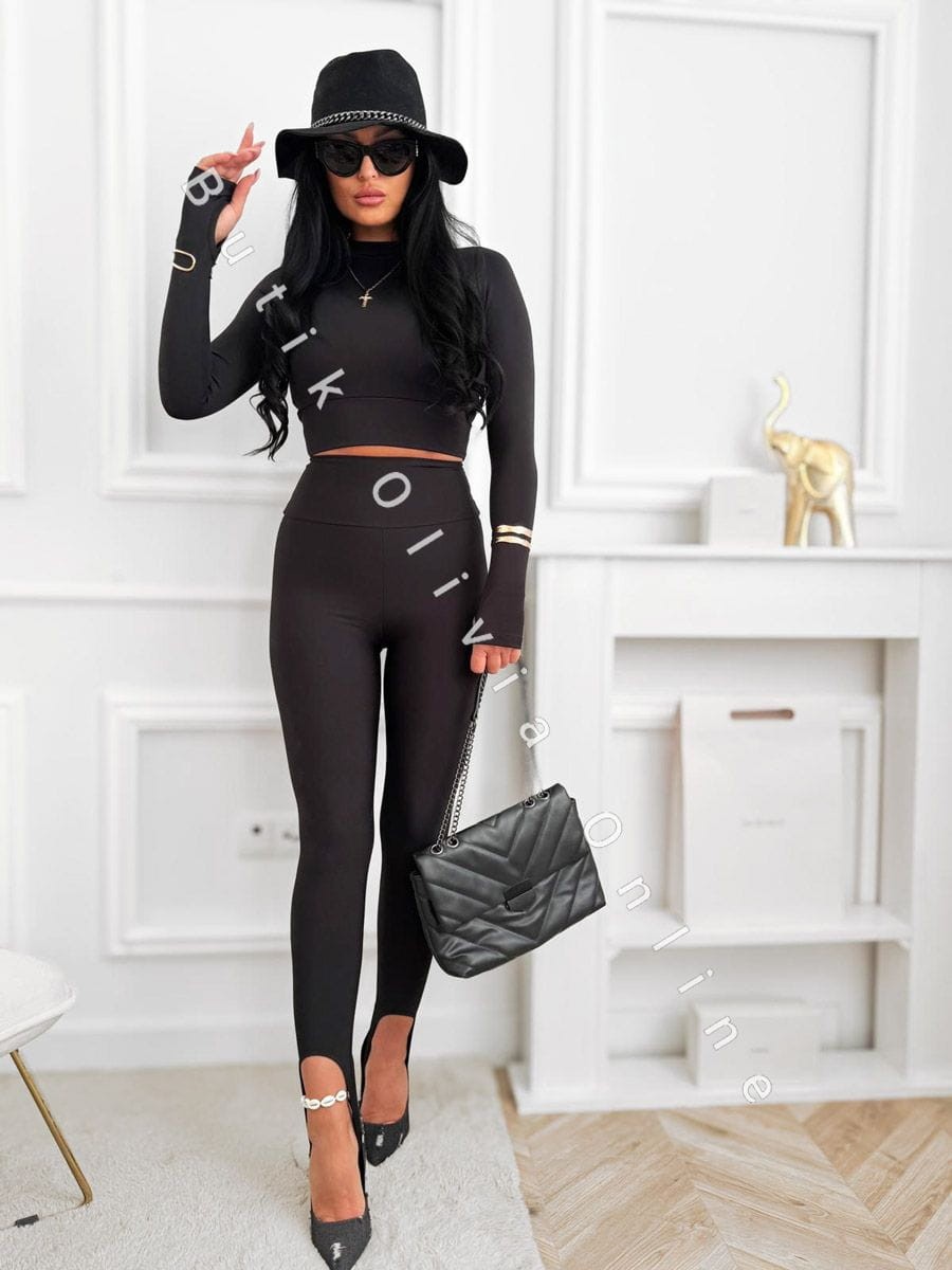 Efektowny komplet z lycry to idealna propozycja dla kobiet, które lubią podkreślać sylwetkę i stawiać na nowoczesny, zmysłowy styl. Zestaw składa się z dopasowanej bluzki oraz legginsów typu narciarki, które pięknie układają się na ciele i optycznie wydłużają nogi. Elastyczny materiał przyjemnie otula sylwetkę, zapewniając wygodę noszenia i perfekcyjne dopasowanie. Bluzka z otworami na kciuki dodaje całości modowego charakteru i sprawia, że komplet prezentuje się jeszcze bardziej stylowo. To świetny wybór zarówno na wyjście, jak i do tworzenia odważnych, kobiecych stylizacji.