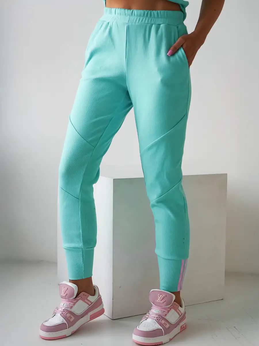 Komplet prążkowany t-shirt + spodnie LAKI - turkusowy