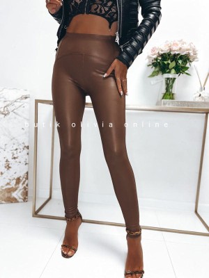 Legginsy skórzane z wysokim stanem - czekoladowe