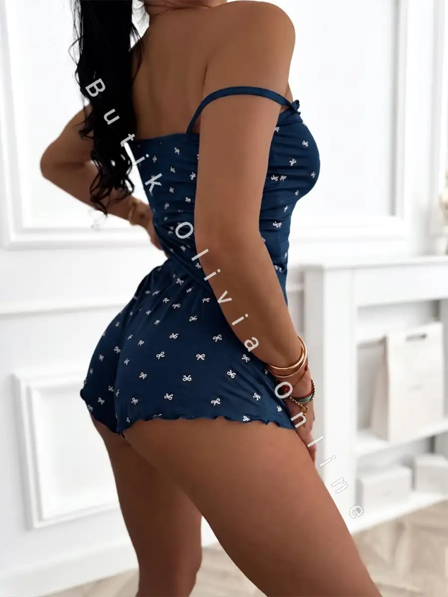 Piżama w kokardki top na ramiączkach + spodenki ARCO - granatowa