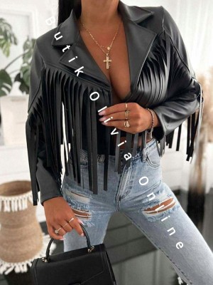 Ramoneska z frędzlami eco lekki połysk - czarna
