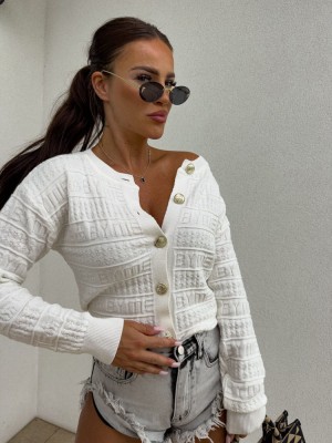 Delikatny i kobiecy. Sweter GIVEN w odcieniu ecru to wybór dla kobiet, które kochają jasne, ponadczasowe kolory i subtelny szyk. Strukturalny wzór z tłoczonym logo BY ME przyciąga wzrok i dodaje swetrowi wyjątkowego charakteru. Złote guziki podkreślają elegancki styl, a miękka, otulająca dzianina sprawia, że to idealny model na każdą porę roku. Doskonały do stylizacji w stylu soft glam, boho lub minimalistycznym – świetnie komponuje się z jasnymi jeansami, szortami lub spódniczką.
