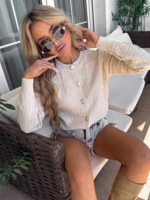 Ciepło, styl i wygoda w jednym. Jasnobeżowy sweter GIVEN to absolutny must-have na sezon przejściowy. Wytłaczany wzór logo BY ME dodaje całości modowego sznytu, a złote guziki w stylu vintage nadają luksusowego akcentu. Noś go rozpięty na top lub zapnij, by podkreślić talię – idealny do szortów z przetarciami, spodni cargo lub spódnic maxi.