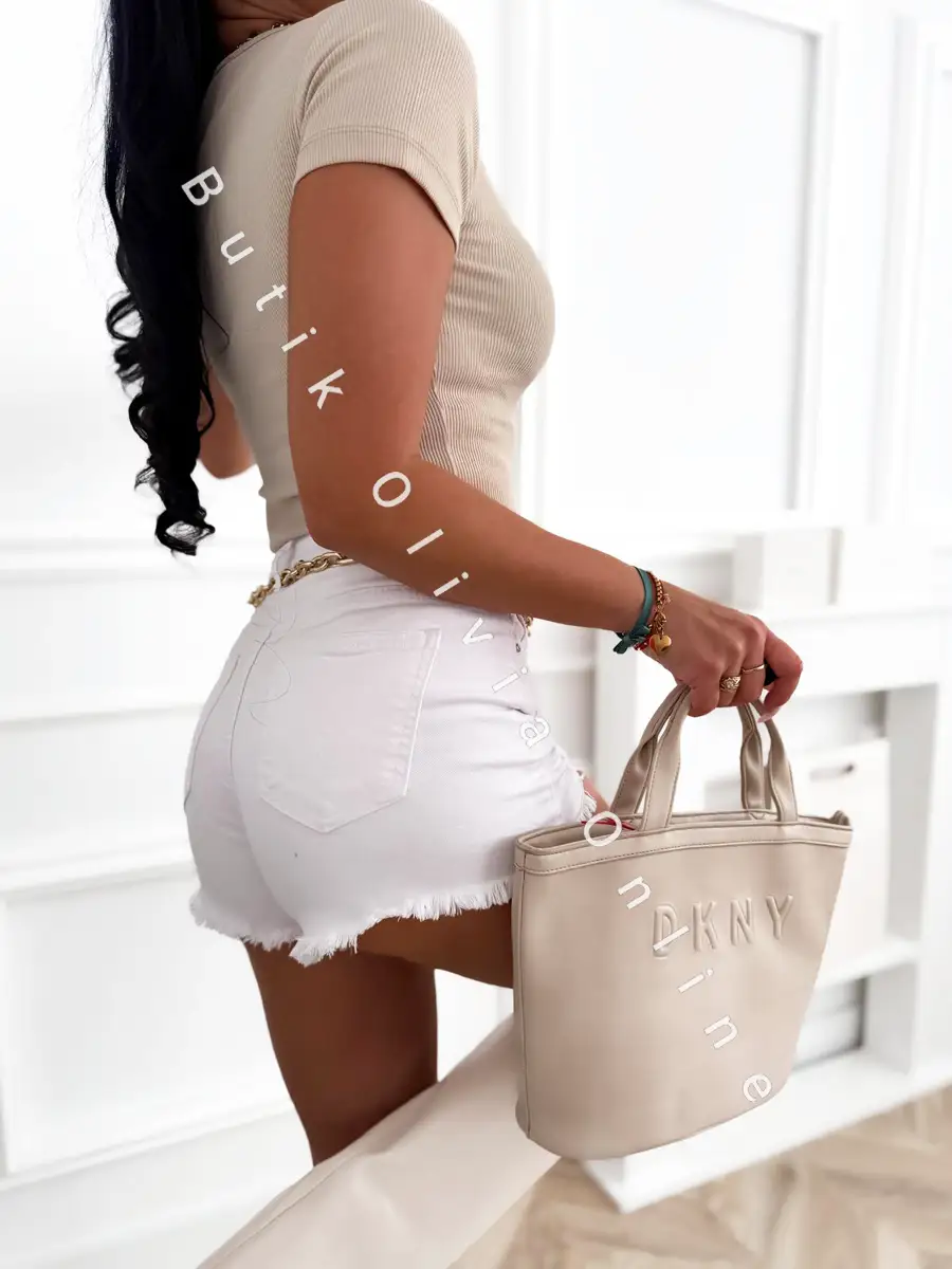 Beżowy t-shirt o dopasowanym kroju to baza, którą wykorzystasz w dziesiątkach stylizacji. Wygląda obłędnie w połączeniu z białymi szortami i złotymi dodatkami, ale równie dobrze sprawdzi się jako baza pod marynarkę do biurowych spódnic czy klasycznych jeansów. Prążkowana struktura materiału dodaje głębi, a krótki rękawek sprawia, że jest to idealny wybór na cieplejsze dni. To produkt, który pokochasz za komfort i efekt "wow", jaki wywołuje.