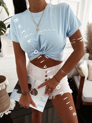 - damska koszulka z haftowanym napisem na lato
