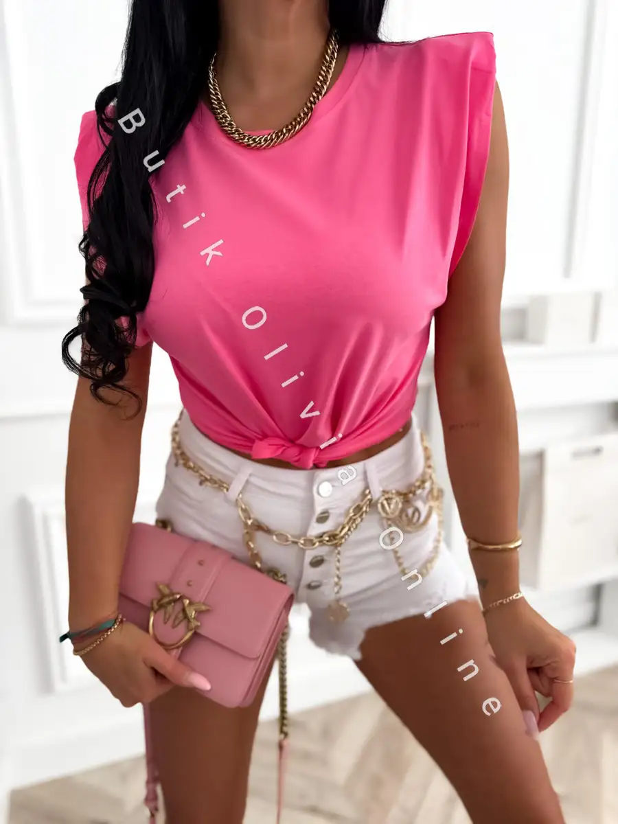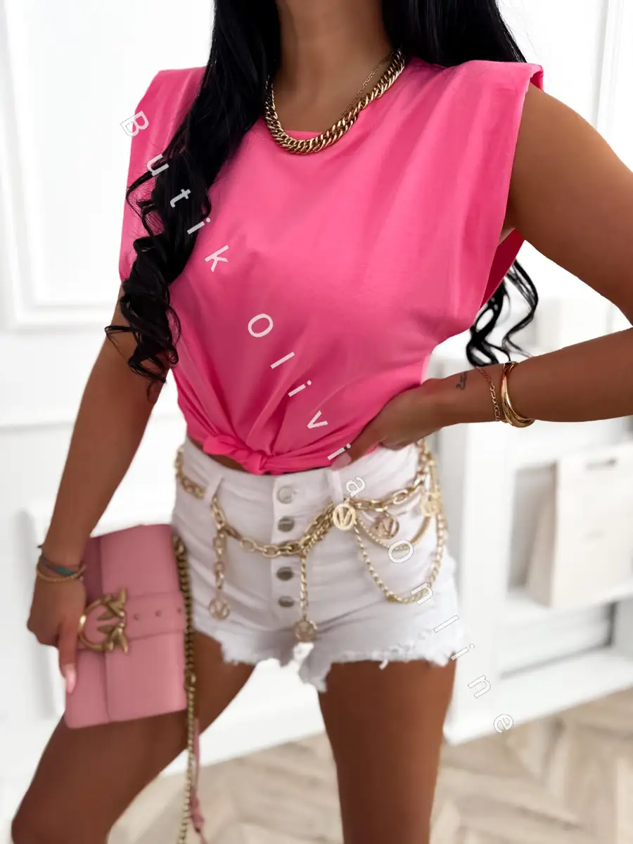 T-shirt z poduszkami na ramionach TRENDY - różowy