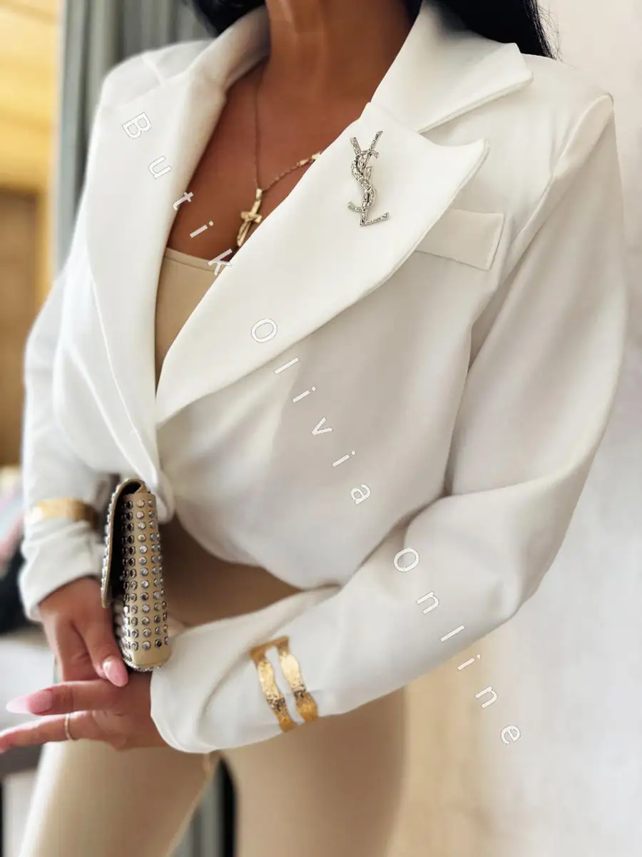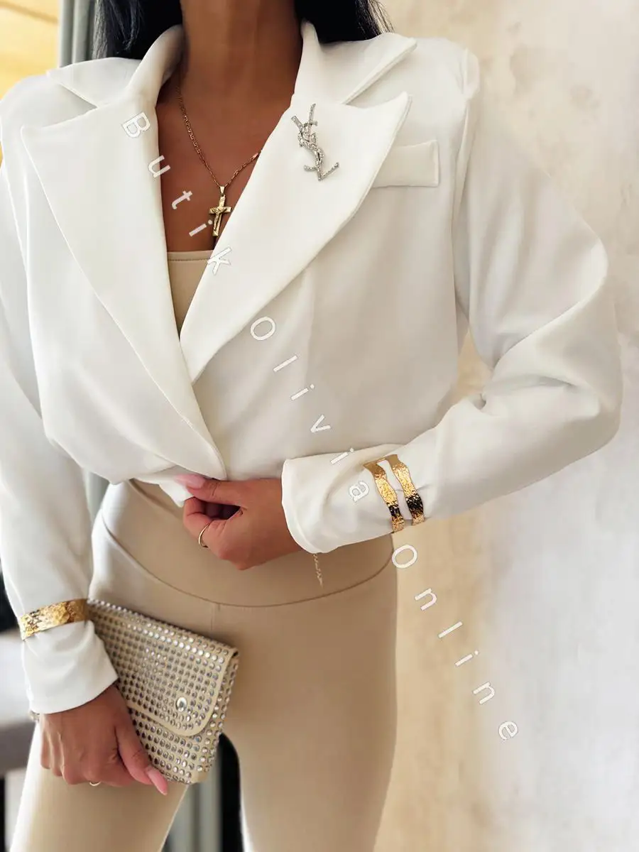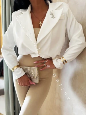Żakiet typu bomber z broszką i poduszkami na ramionach GIACA - biały